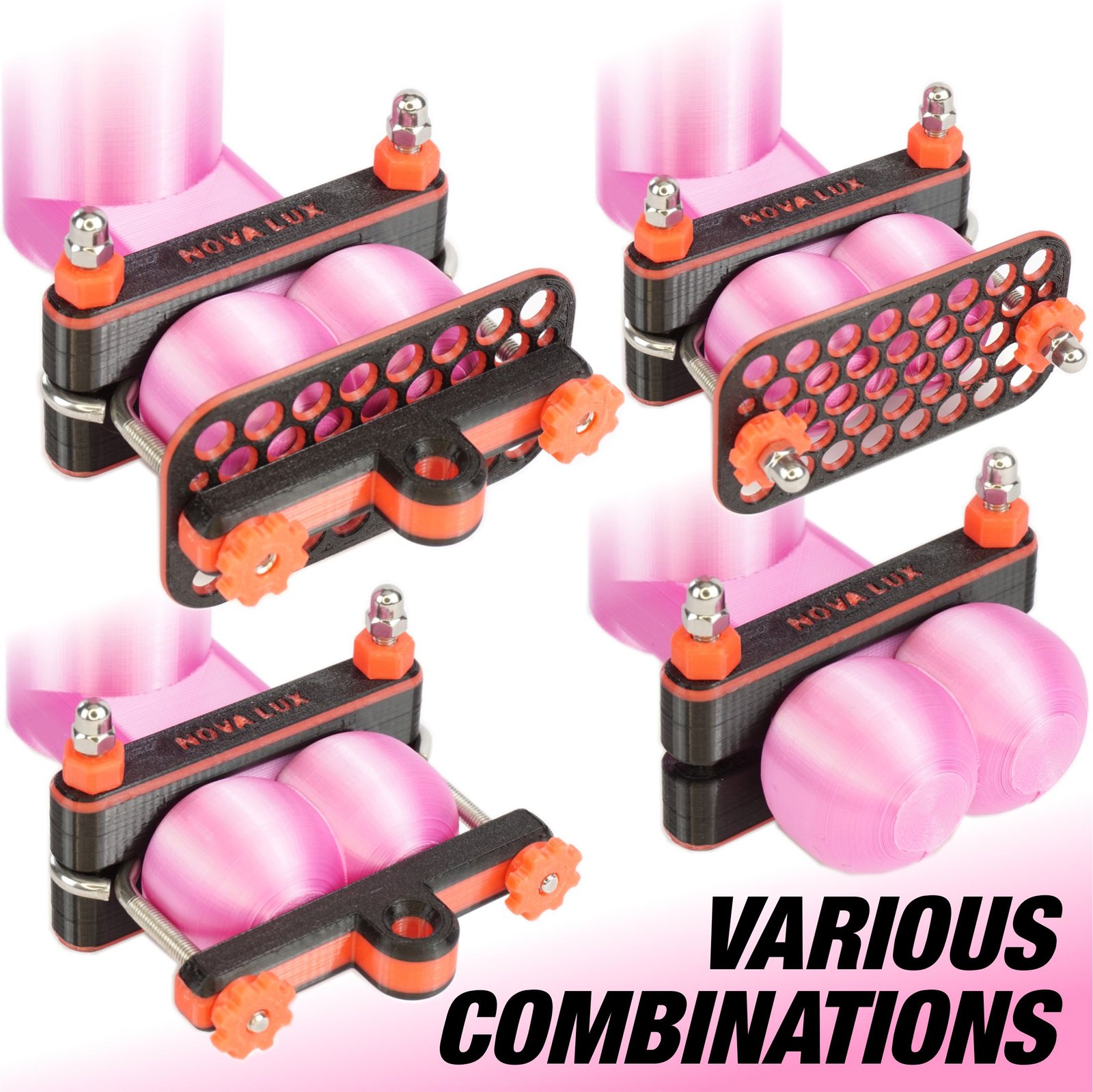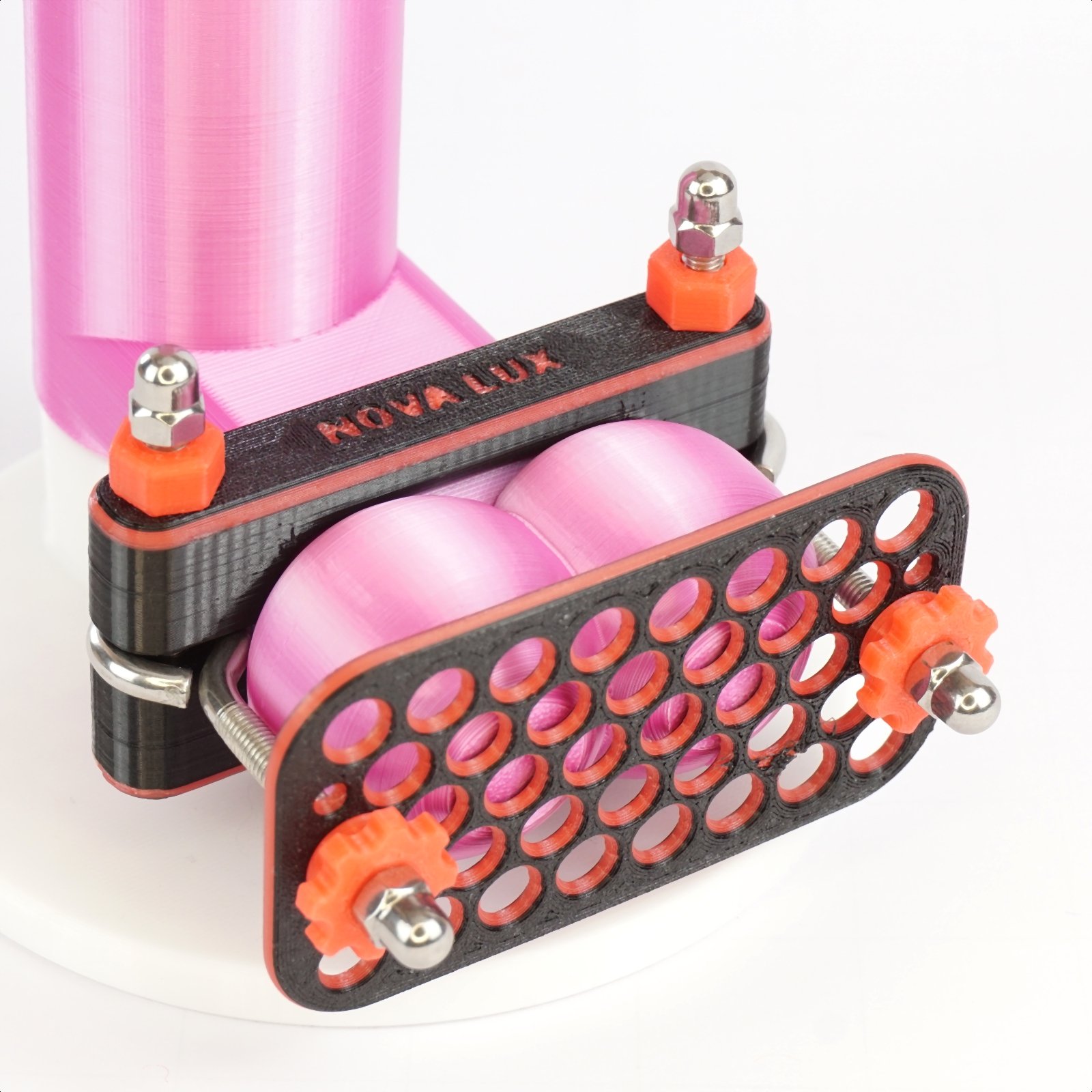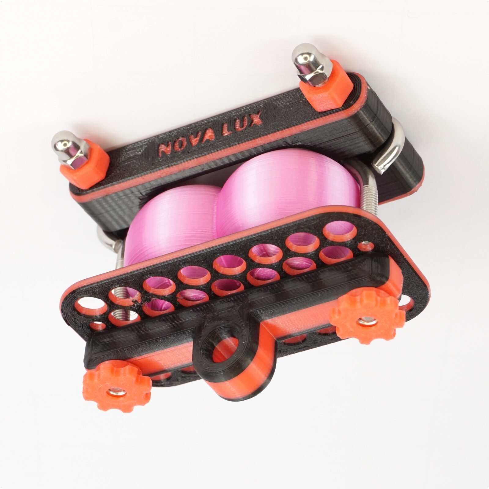 • Black and red dual-frame design with adjustable pressure screws