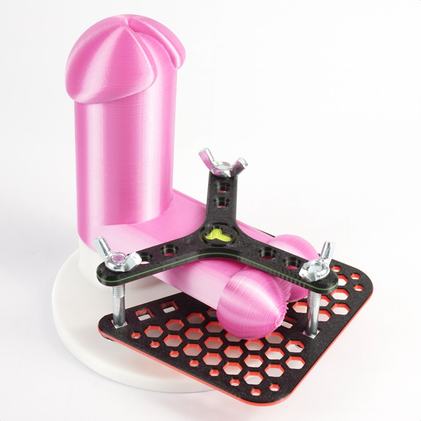 Place the testicles between the two perforated plates. The included Y-press arms are inserted through the top to apply targeted force. You may use one or both for different CBT effects.