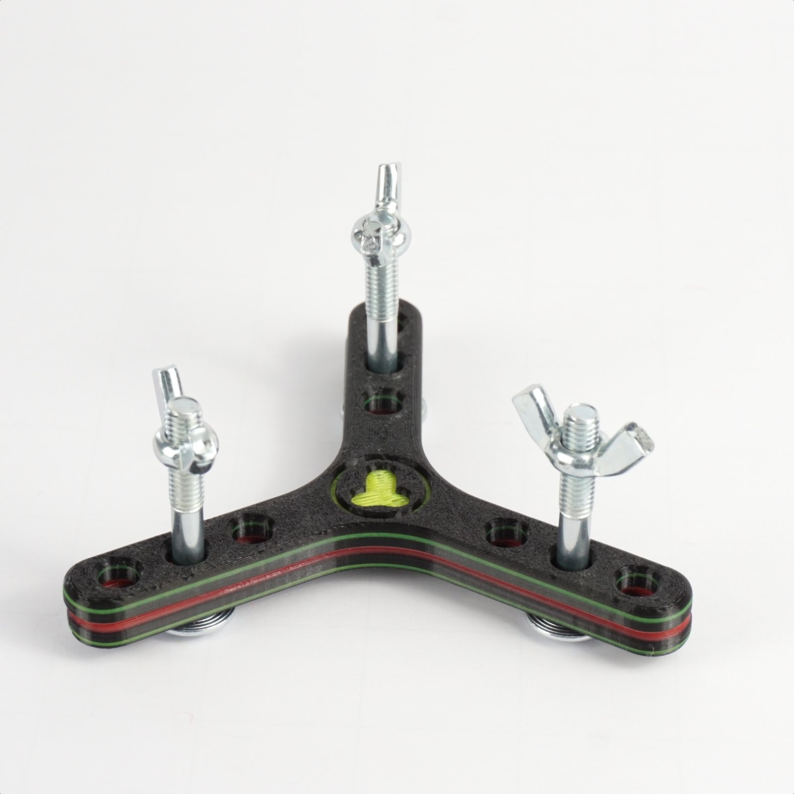 The spacing of the bolts can also be adjusted to suit the user’s anatomy.