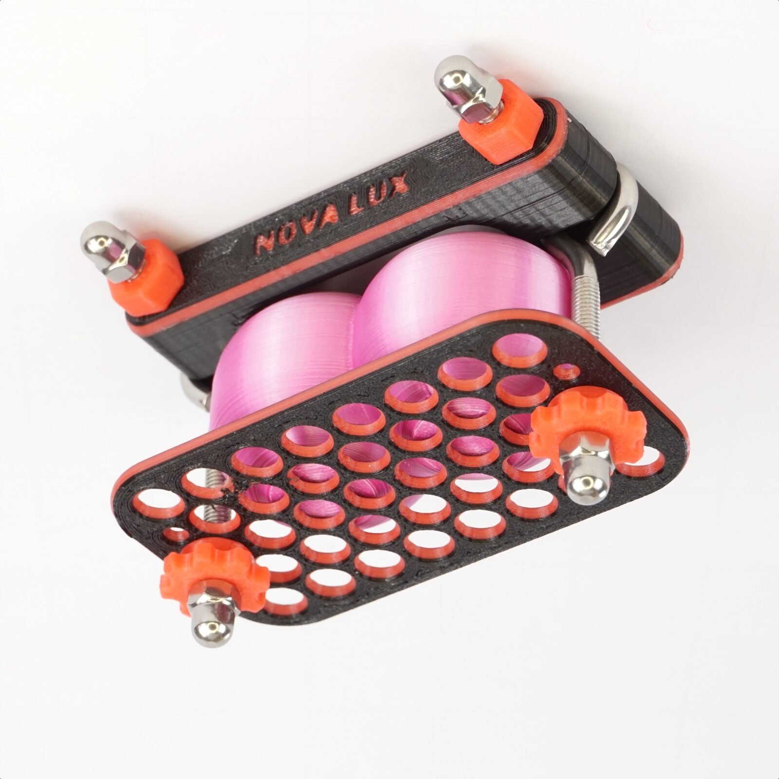 – Lower perforated compression plate (also in black and red),